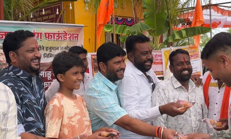 *जय बजरंग फाउंडेशनच्या वतीने हनुमान चालीसा व लाडूवाटप* हनुमानांचा आदर्श युवक, बालकांना कळावा, हेतूने उपक्रम